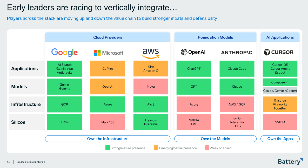 Para visualizar algumas das coisas que refleti acima, esse relatório da Battery Ventures traz diversos pontos relevantes. Achei legal que muitas ideias corroboram com o report de IA que produzi em meados de 2025 (aqui para quem não viu).