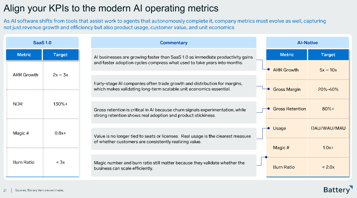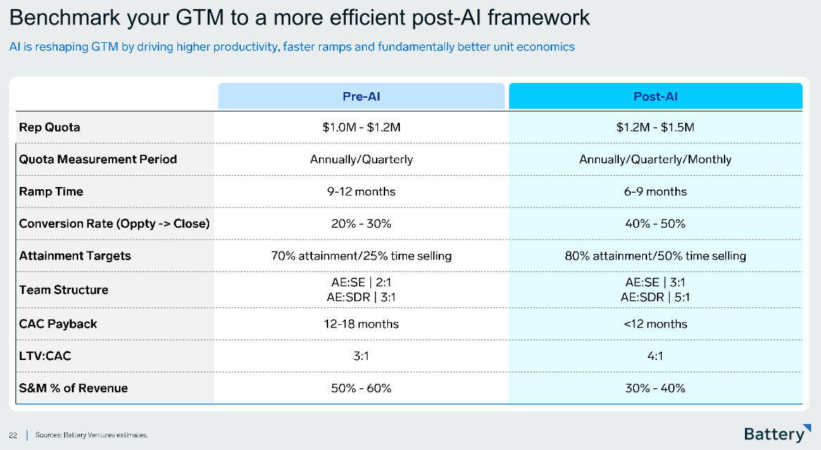 Esses dois slides abaixo trazem métricas, e em seguida de vendas, e seus benchmarks globais para empresas de IA.